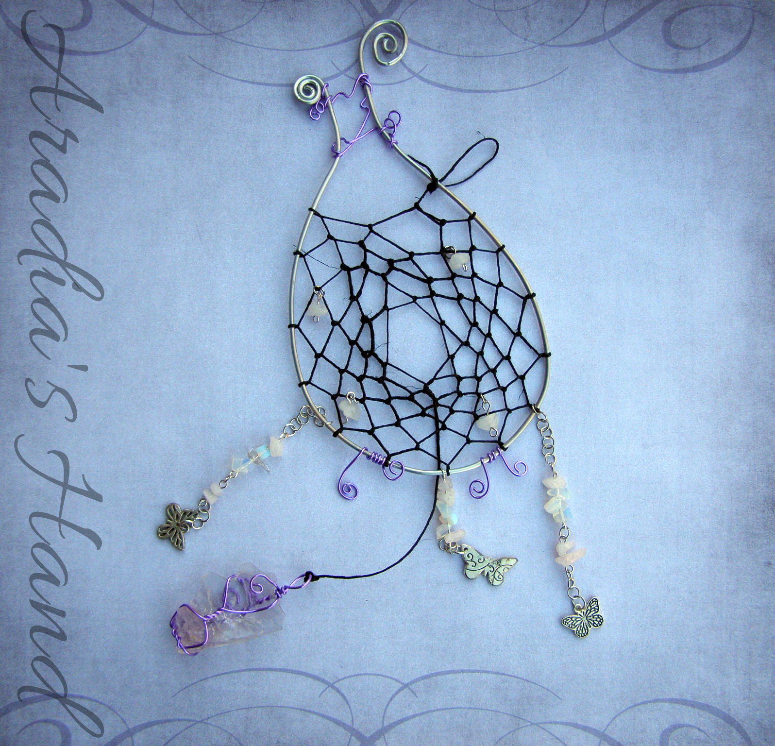 Spirit Dreamcatchers are an original by Rev. Naware Danaus, RMT of Butterfly Phoenix Coaching, part of my Faith Works line in my Spiritual & Decor collections. Stone information referenced from Judy Hall's The Crystal Bible.