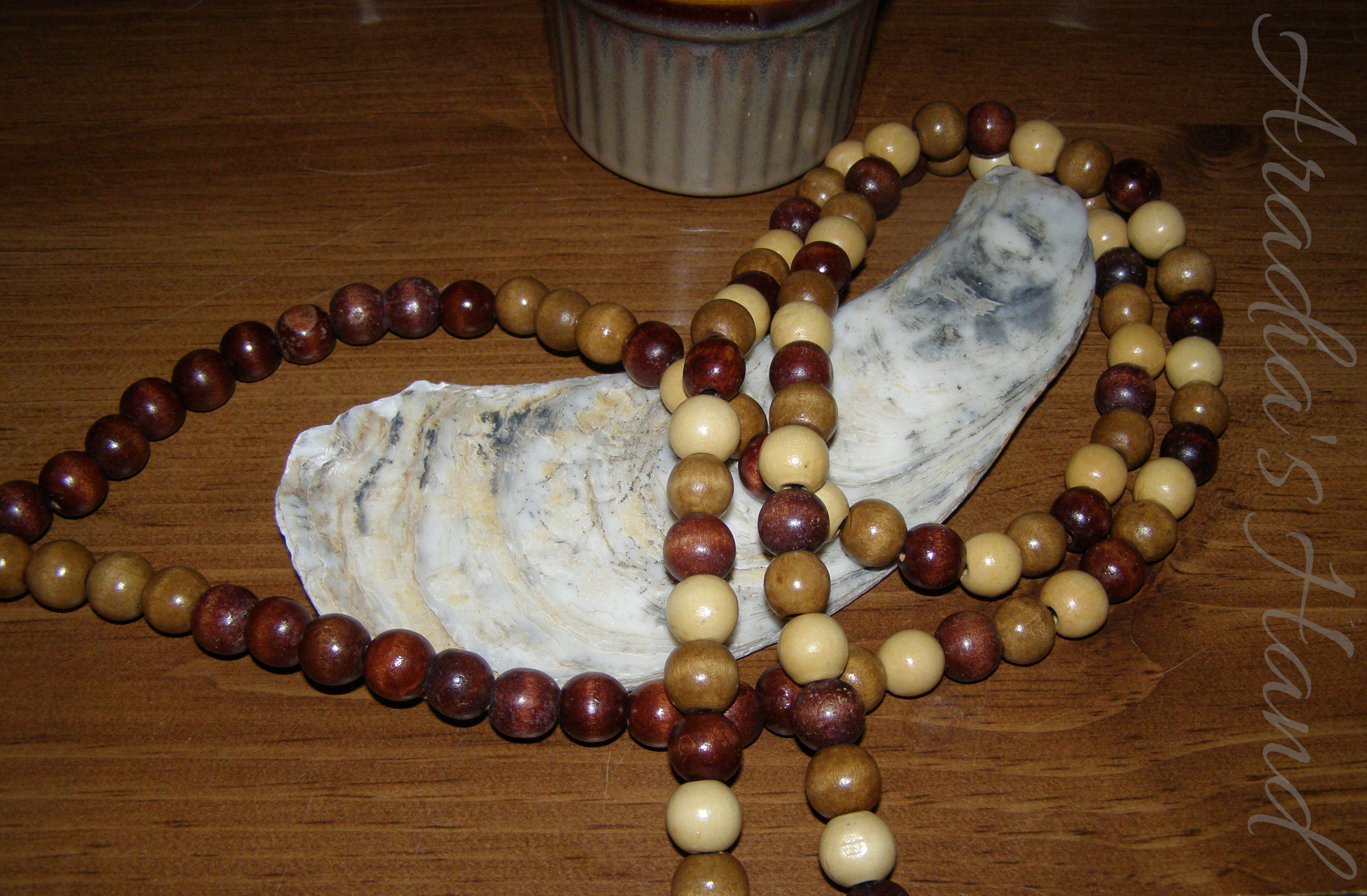 Made with wooden beads and cotton yarn.
