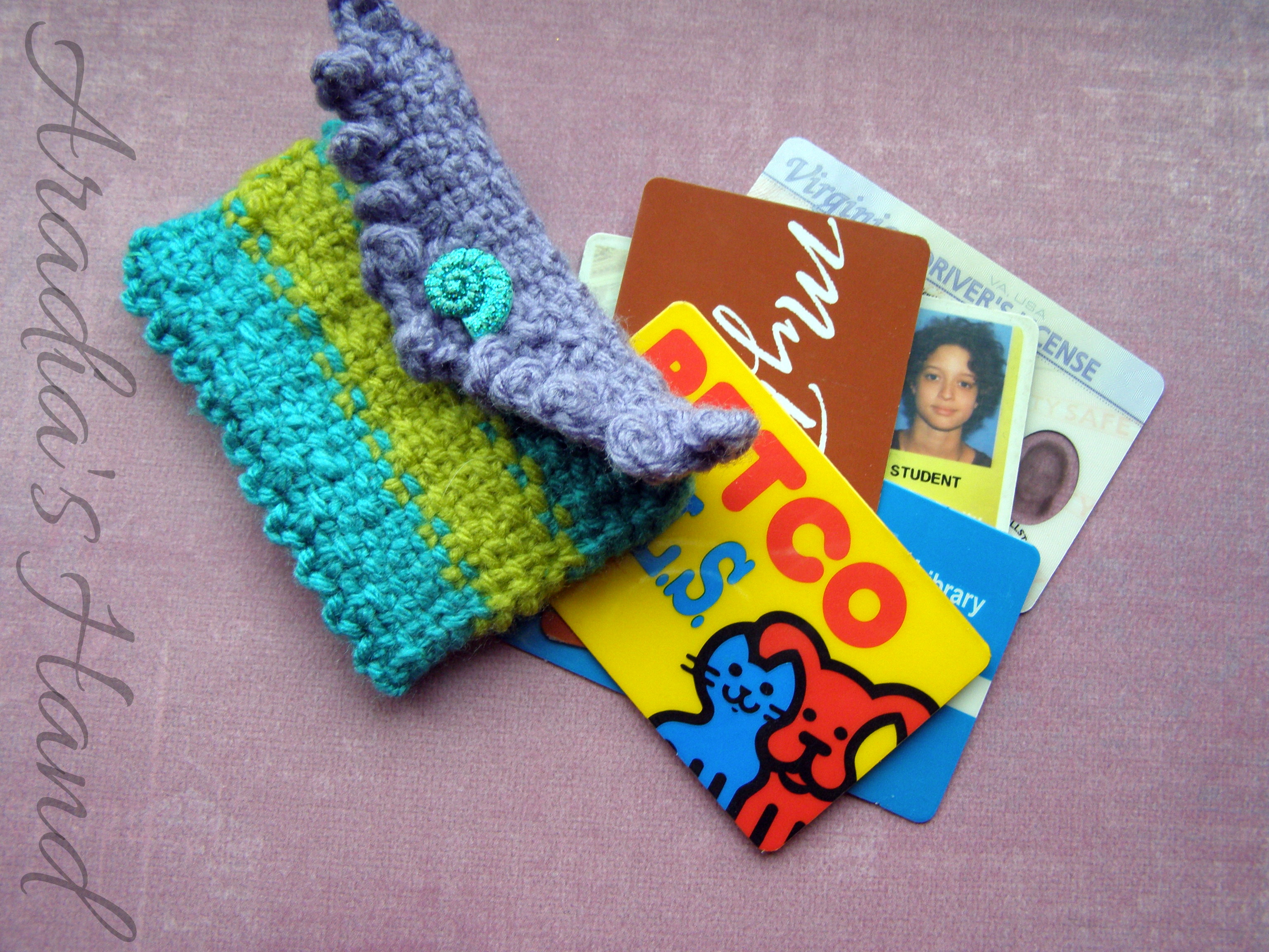 Every mermaid needs a place to stash her treasure and here is just what you need! I used the soothing blue and green of a tropical sea for the body of the wallet. It closes with a glittery nautilus-shaped bright blue button. The muted lavender flap is embellished with a decorative edging that mimics the undulating waves of the ocean. This makes carrying all your important cards without having to lug around your purse easy. You can also toss it in your purse and the bright colors and soft texture make finding it easy, even in the dark! The Mermaid’s Treasure card wallet also makes for a wonderful gift to treat yourself or someone else!