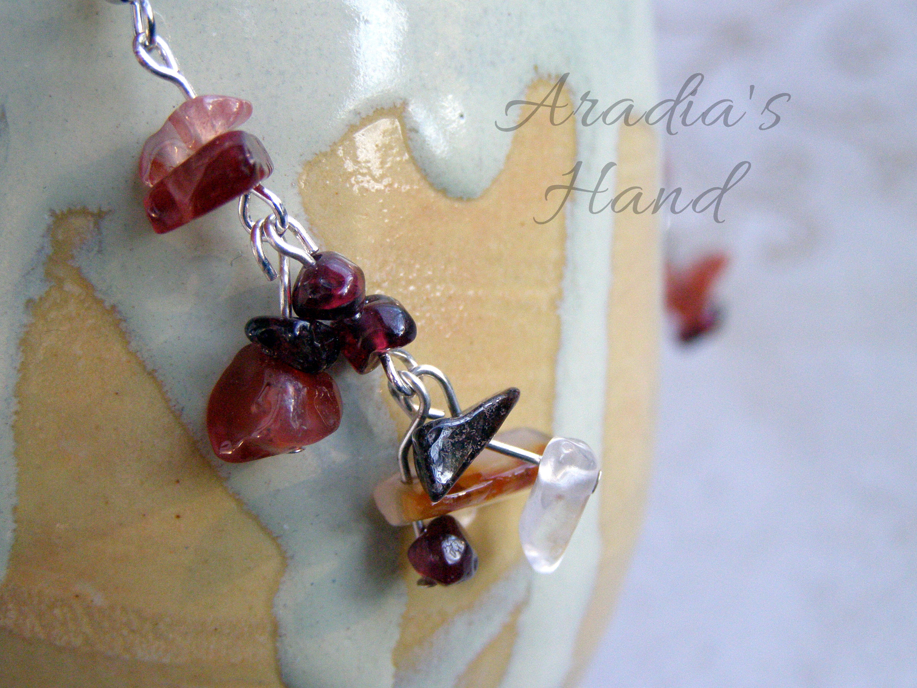 Stoking the fire of imagination & creation allows us to bring forth new things. Fire dances spritely & lively. It motivates & inspires you. Alternating pins create a dangling cascade with Fire Agate & Garnet. These fire stones relating to the Root Chakra, grounding and energizing you to bring forth your creations unabashedly.