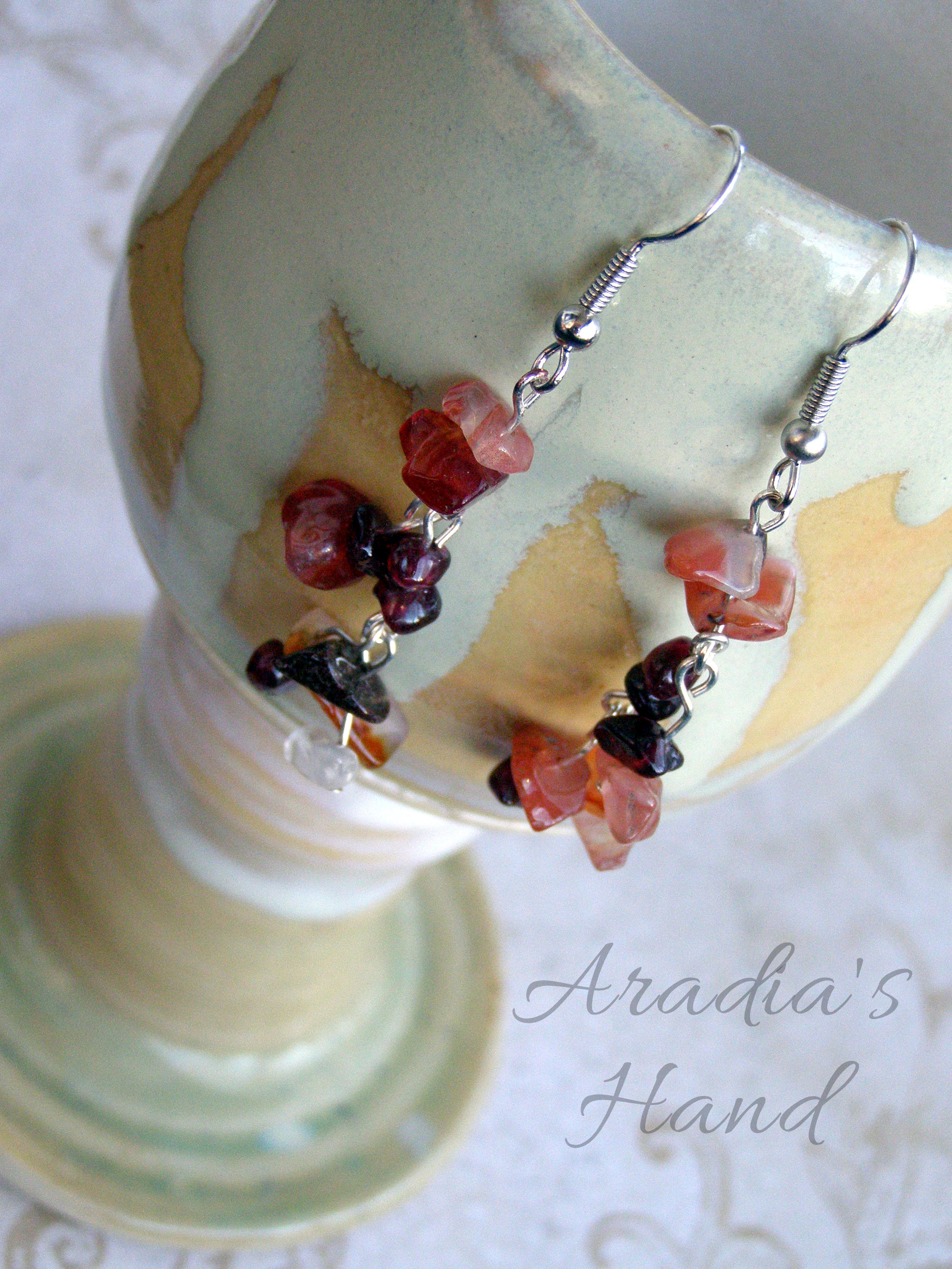 Made with French earwires, nickel plated findings, Fire Agate & Garnet bead chips.