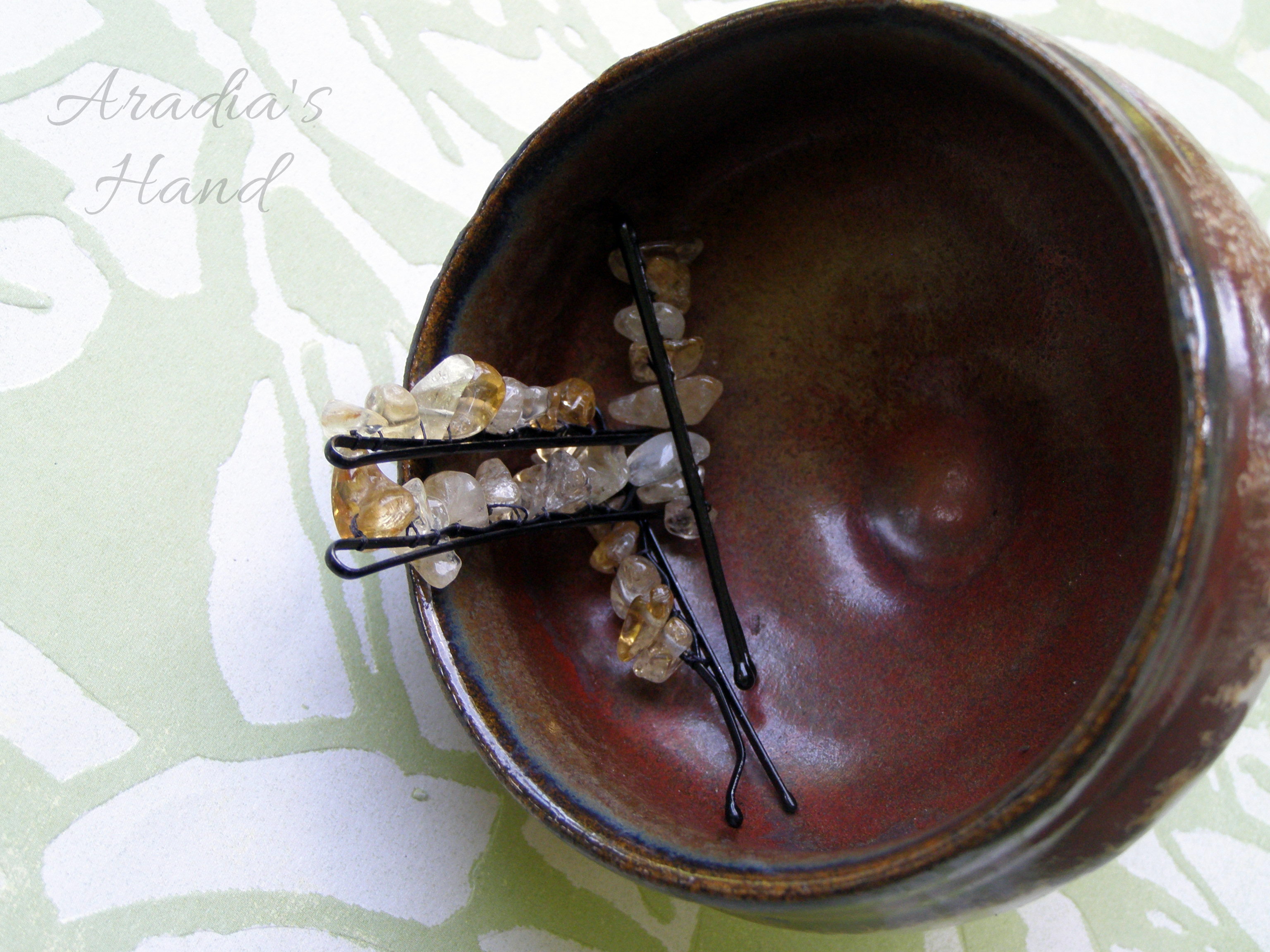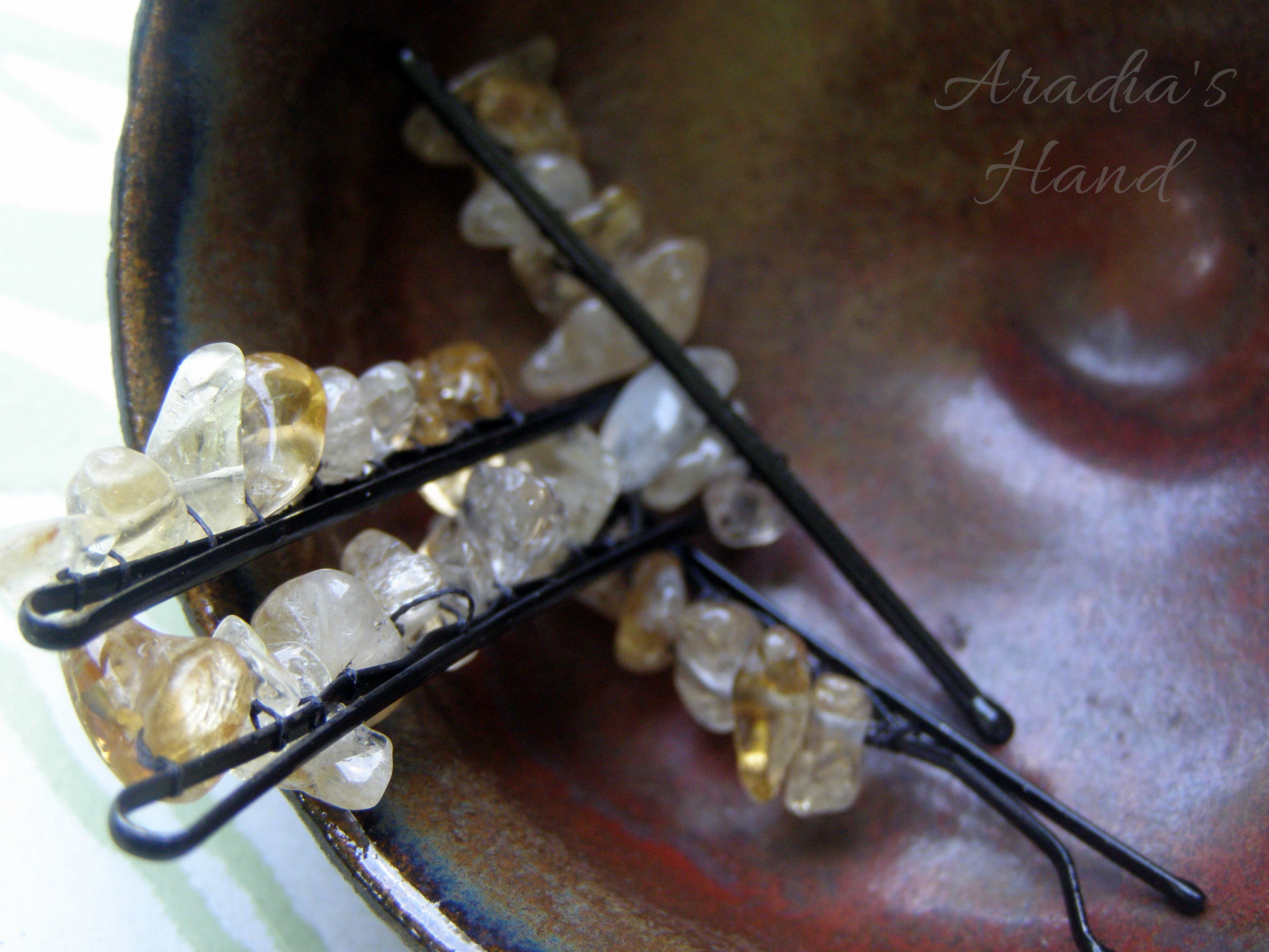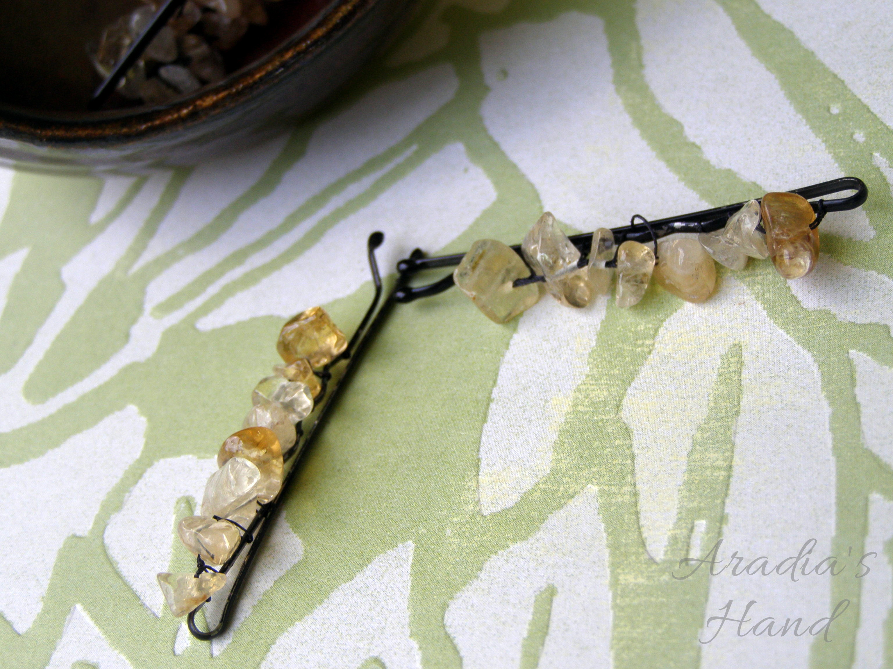 Made with... metal bobby pins, Citrine bead chips, & dual duty thread.