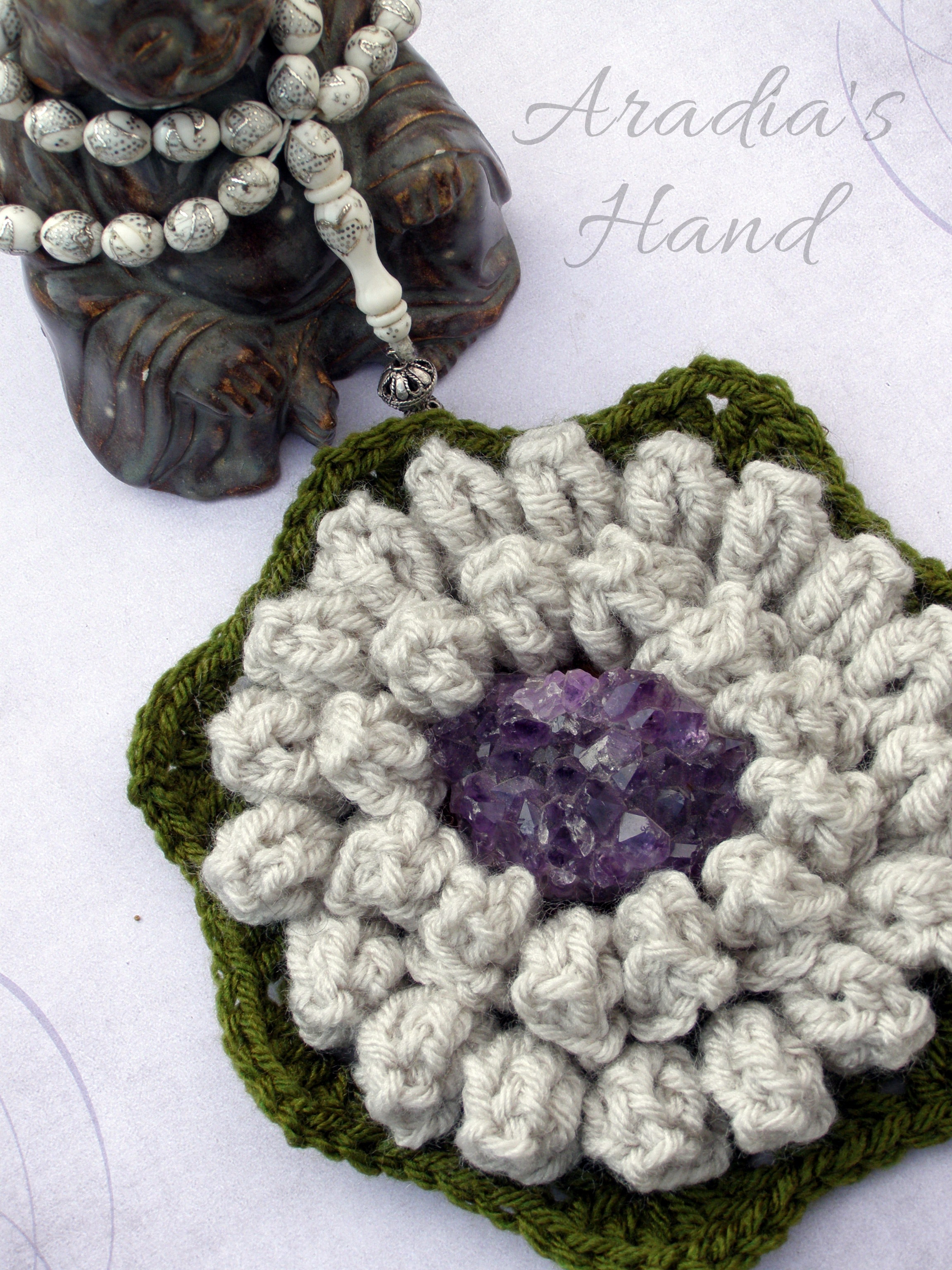 Original pattern by Karen of Colour in a Simple Life on Etsy, made & modified by Aradia’s Hand, part of my Faith Works, Hooked Up, Chakra Wellness, & Elemental Energy lines in my Spiritual & Decor collections.