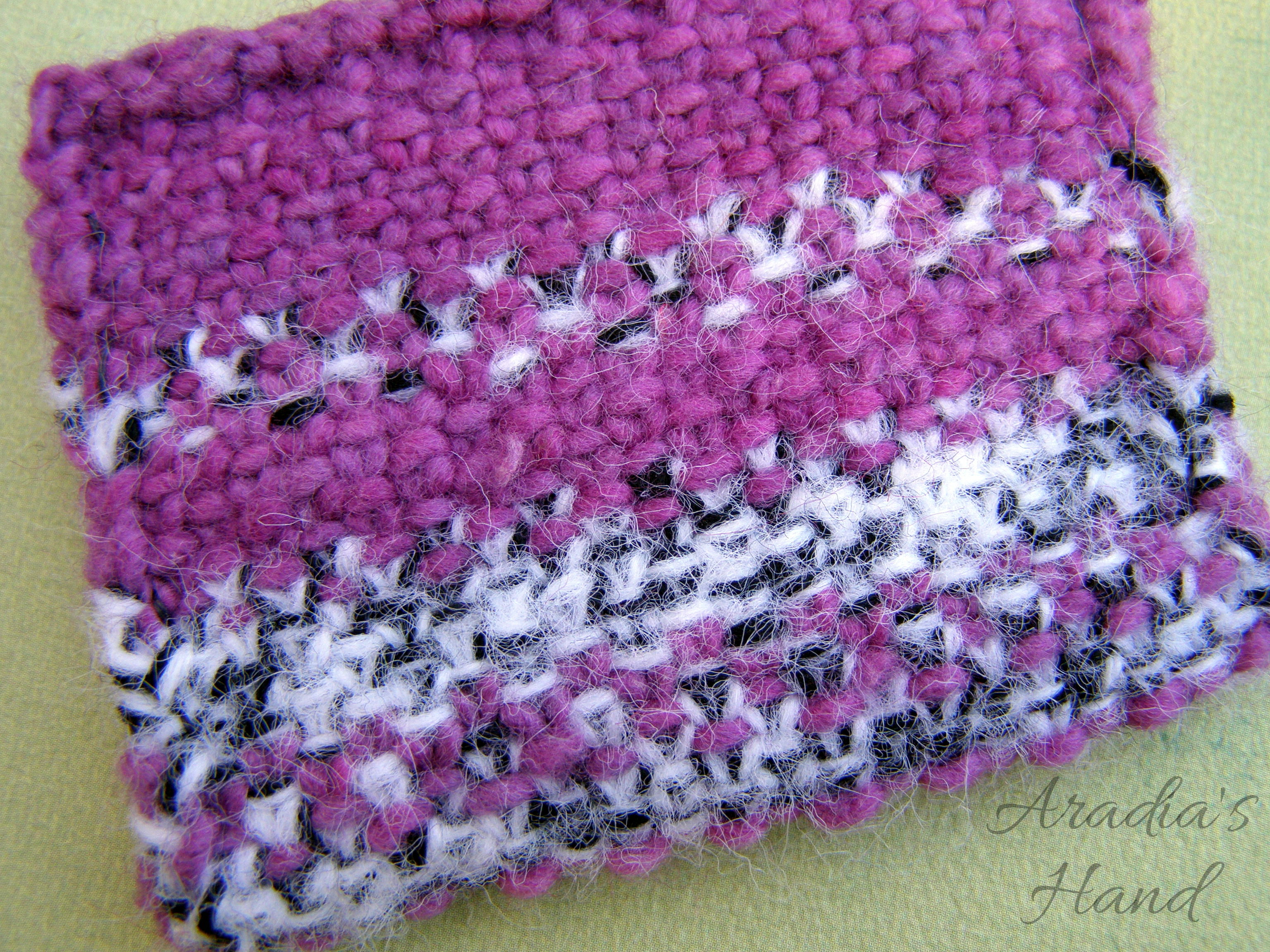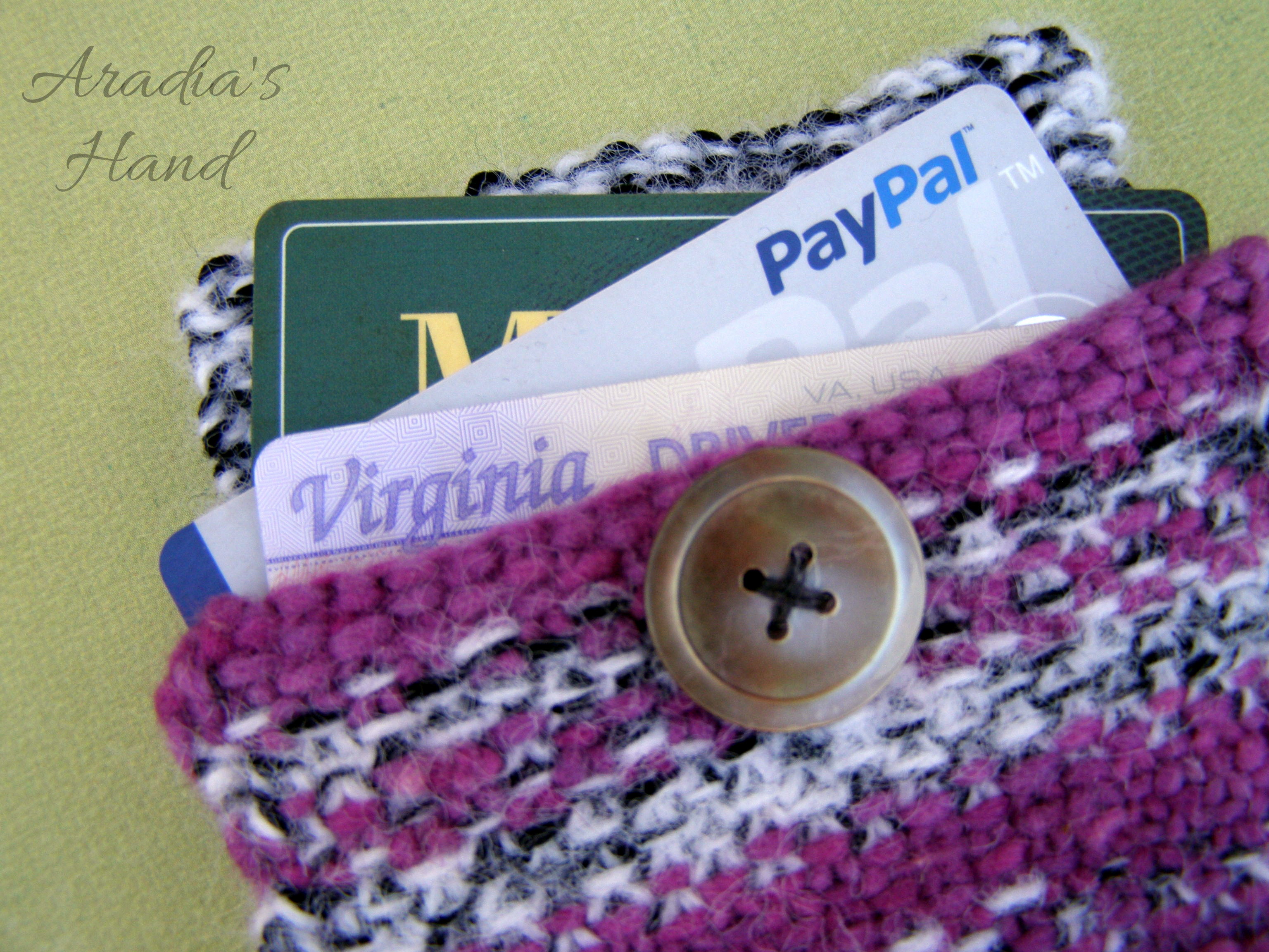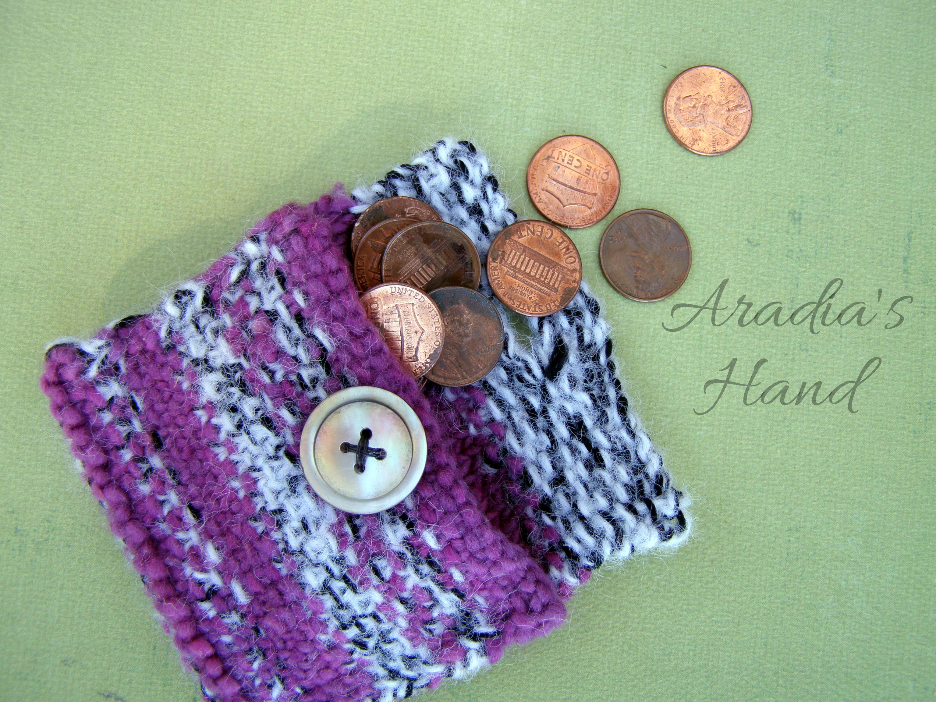 Nothing like a penchant for the ridiculous to cause imagination to run wild with inspiration...Why be one of the crowd and blend in when you can be a purple zebra? Be different, be unique, be you (most of all) and stand apart with this adorable little coin purse! I knew the fun little stripe pattern would catch your eye and the marled appearance of the black & white is o so interesting. This little wallet hand knit in a nice dense stitch so you won’t lose any of your cards or coins, but small enough to easily slip in a back pocket or purse!