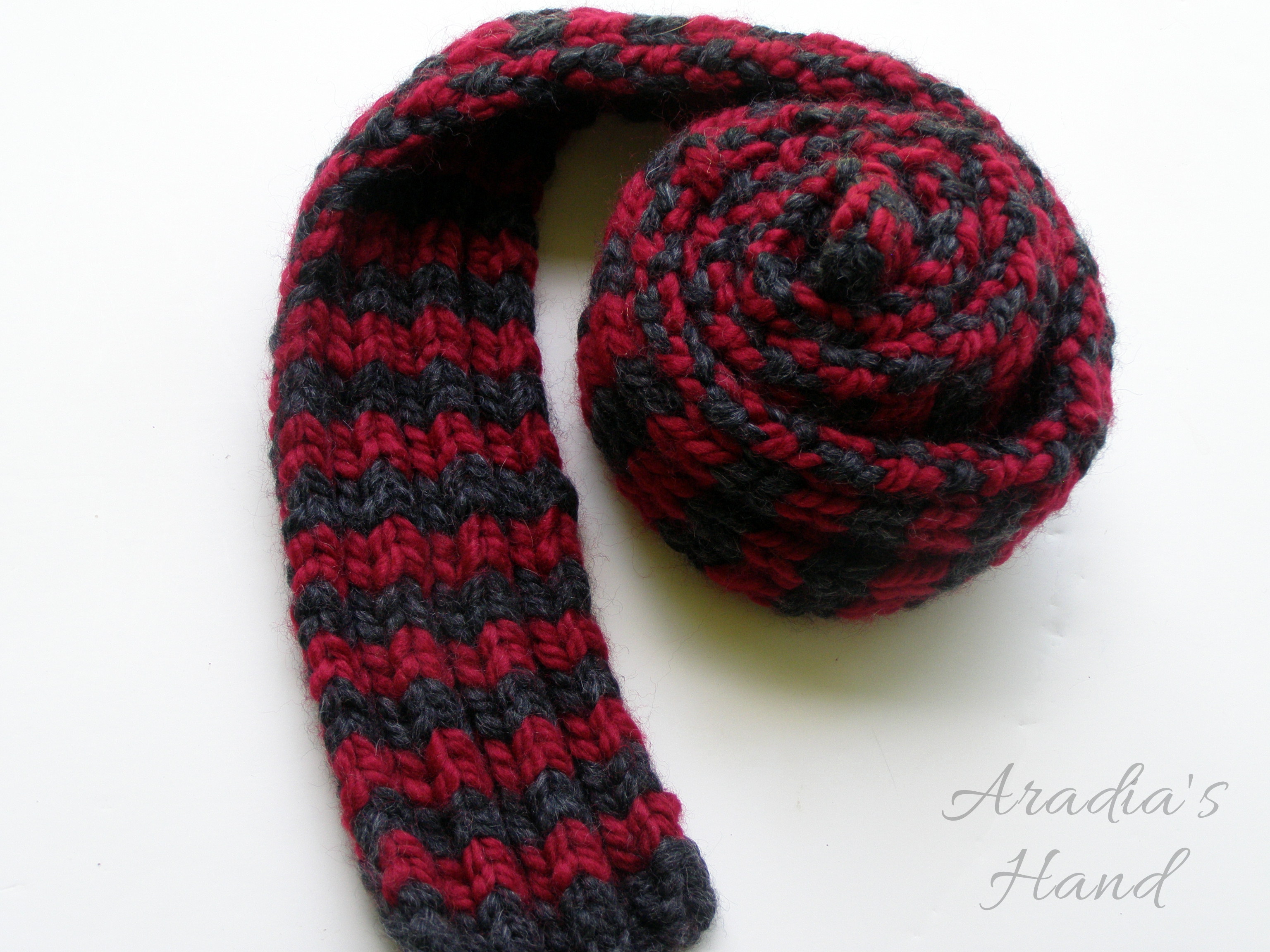 O dear sweet Emily...well perhaps sweet isn’t the word I should use for her. Snarky, sarcastic, dark. Ah yes, those will do just fine. Have a little spitfire on your hands? If she is indeed Emily-like she’ll approve of this scarf. It’s warm, but skinny - perfect for trailing along behind her as she tarries off on adventures. Striped and ribbed for extra awesome-ness!