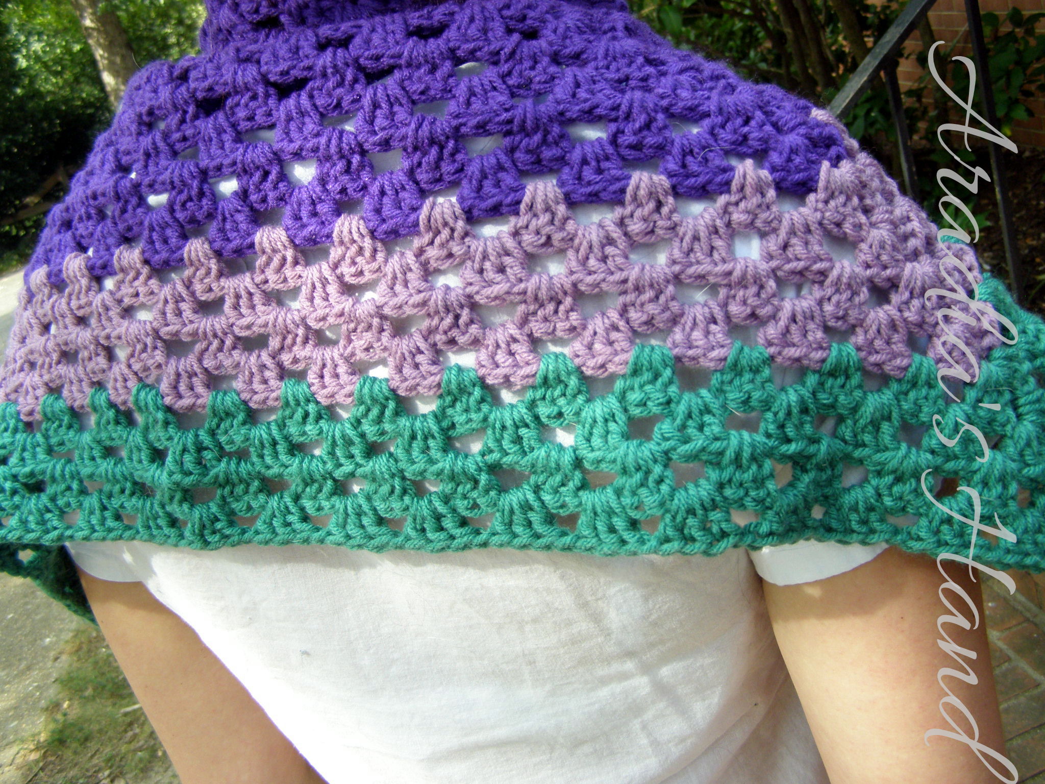 To quell that wild mermaid spirit in you, like Ariel out of water when she began to miss the sea… This handmade shawl is made in the classic style of shell stitches in crochet in the form of a rectangle. Cascading colors evoke images of the cool ocean waters to the seafaring soul. If you connect with the water element this lovely drape is perfect. Made in a lovely trio of cool colors this wonderful accessory will keep you just warm enough! *Requires a shawl pin.*